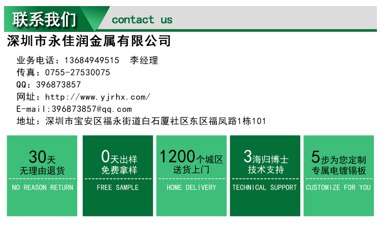廣泛應(yīng)用于電鍍、線路板制作、電子工業(yè)等行業(yè)。產(chǎn)品符合日本工業(yè)標(biāo)準(zhǔn)JIS Z3283-A級和美國工業(yè)標(biāo)準(zhǔn)QQS 571E的要求,本產(chǎn)品永佳潤陽極板得到廣泛知名企業(yè)的認(rèn)可,客戶可以百分之百的放心使用。